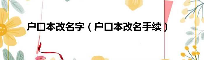 1、回答 户口本改名字手续:写更名申请2、到街道或单位的证明,改名字的程序特别提醒,如果是学生就到学校开证明,只需证明是本校学生即可。