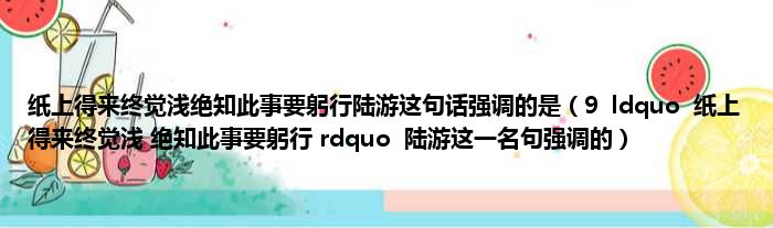 纸上得来终觉浅绝知此事要躬行陆游这句话强调的是(9 ldquo 纸上得来终觉浅 绝知此事要躬行 rdquo 陆游这一名句强调的)