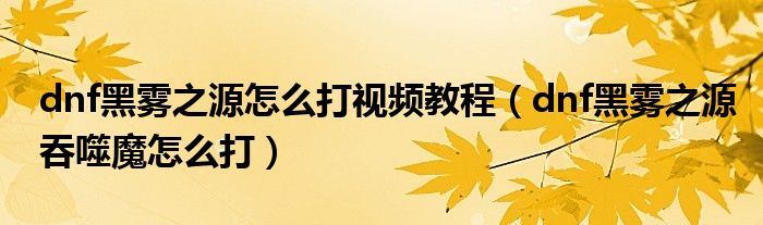 dnf黑雾之源怎么打视频教程(dnf黑雾之源吞噬魔怎么打)