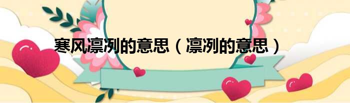 导读 大家好,小东方来为大家解答以上的问题。寒风凛冽的意思,凛冽的意思这个很多人还不知道,现在让我们一起来看看吧!1、凛是寒冷的意思。2、凛