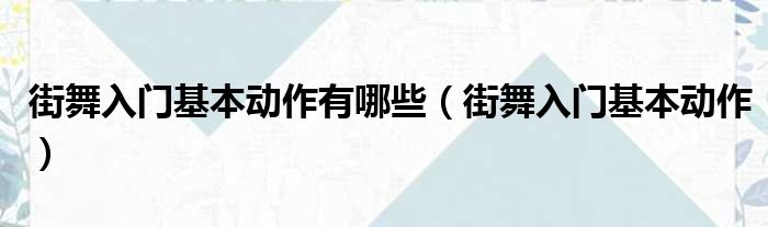 街舞入门基本动作有哪些(街舞入门基本动作)