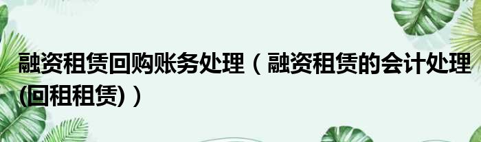 融资租赁回购账务处理(融资租赁的会计处理(回租租赁))