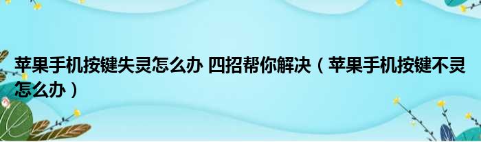 苹果手机按键失灵怎么办 四招帮你解决(苹果手机按键不灵怎么办)