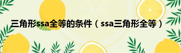 三角形ssa全等的条件(ssa三角形全等)