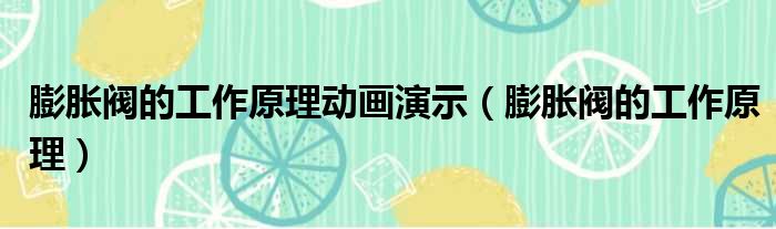 膨胀阀的工作原理动画演示(膨胀阀的工作原理)