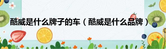 导读 大家好,小东方来为大家解答以上的问题。酷威是什么牌子的车,酷威是什么品牌这个很多人还不知道,现在让我们一起来看看吧!1、酷威是美国道