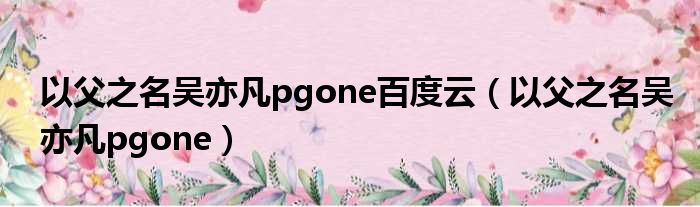 以父之名吴亦凡pgone百度云(以父之名吴亦凡pgone)