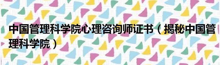 中国管理科学院心理咨询师证书(揭秘中国管理科学院)