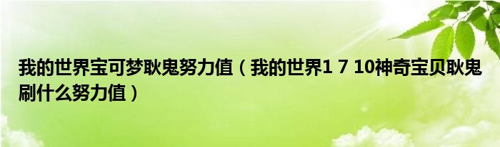 我的世界宝可梦耿鬼努力值(我的世界1 7 10神奇宝贝耿鬼刷什么努力值)