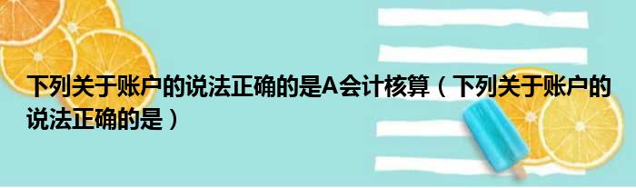 下列关于账户的说法正确的是A会计核算(下列关于账户的说法正确的是)
