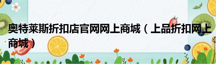 奥特莱斯折扣店官网网上商城(上品折扣网上商城)