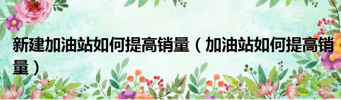 新建加油站如何提高销量(加油站如何提高销量)