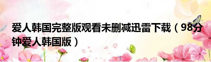 导读 大家好,小东方来为大家解答以上的问题。爱人韩国完整版观看未删减迅雷下载,98分钟爱人韩国版这个很多人还不知道,现在让我们一起来看看吧!