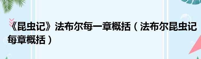 《昆虫记》法布尔每一章概括(法布尔昆虫记每章概括)