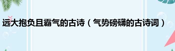 远大抱负且霸气的古诗(气势磅礴的古诗词)