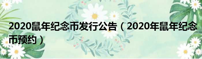2020鼠年纪念币发行公告(2020年鼠年纪念币预约)
