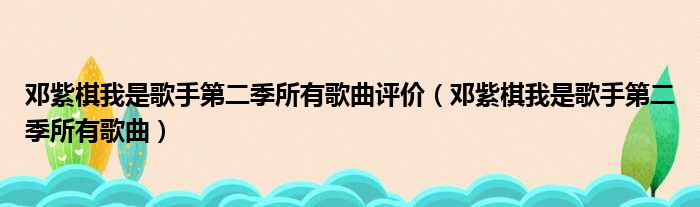 导读 大家好,小东方来为大家解答以上的问题。邓紫棋我是歌手第二季所有歌曲评价,邓紫棋我是歌手第二季所有歌曲这个很多人还不知道,现在让我们一