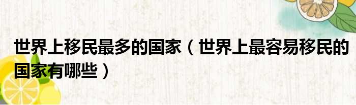 世界上移民最多的国家(世界上最容易移民的国家有哪些)