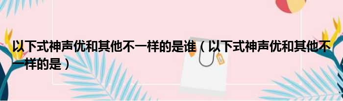以下式神声优和其他不一样的是谁(以下式神声优和其他不一样的是)