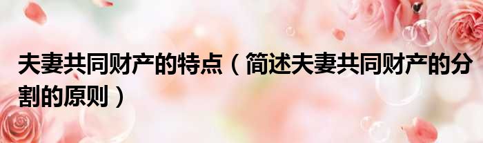夫妻共同财产的特点(简述夫妻共同财产的分割的原则)