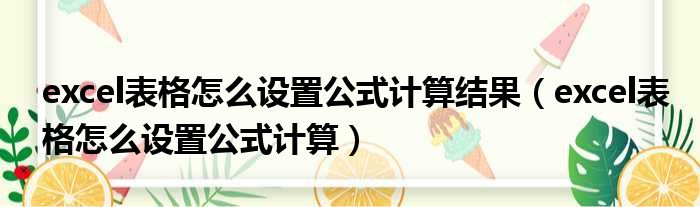 excel表格怎么设置公式计算结果(excel表格怎么设置公式计算)