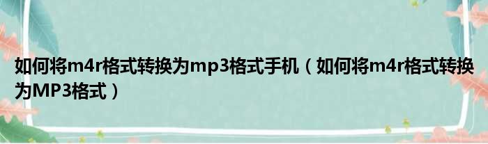 如何将m4r格式转换为mp3格式手机(如何将m4r格式转换为MP3格式)