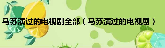 马苏演过的电视剧全部(马苏演过的电视剧)