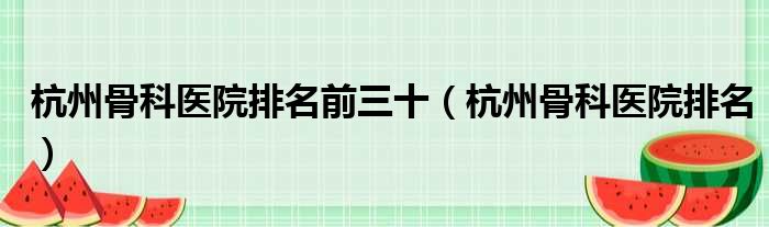 杭州骨科医院排名前三十(杭州骨科医院排名)