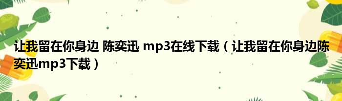 让我留在你身边 陈奕迅 mp3在线下载(让我留在你身边陈奕迅mp3下载)