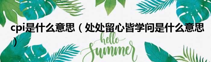 大家好,小东方来为大家解答以上的问题。cpi是什么意思,处处留心皆学问是什么意思这个很多人还不知道,现在让我们一起来看看吧!