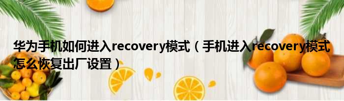 华为手机如何进入recovery模式(手机进入recovery模式怎么恢复出厂设置)