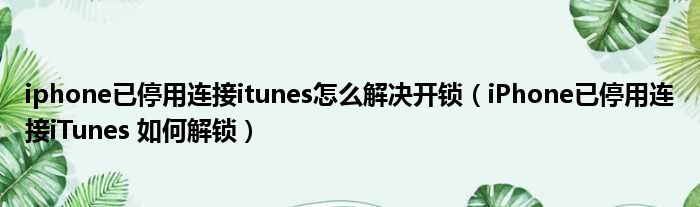 iphone已停用连接itunes怎么解决开锁(iPhone已停用连接iTunes 如何解锁)