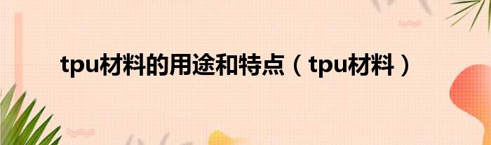 大家好,小东方来为大家解答以上的问题。tpu材料的用途和特点,tpu材料这个很多人还不知道,现在让我们一起来看看吧!