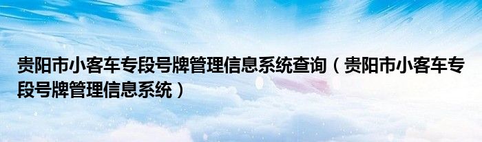 贵阳市小客车专段号牌管理信息系统查询(贵阳市小客车专段号牌管理信息系统)
