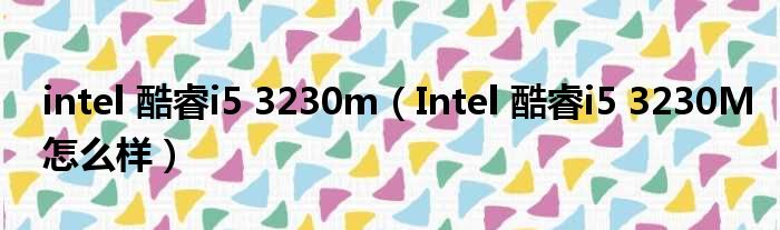 intel 酷睿i5 3230m(Intel 酷睿i5 3230M怎么样)