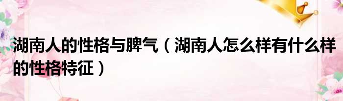 湖南人的性格与脾气(湖南人怎么样有什么样的性格特征)