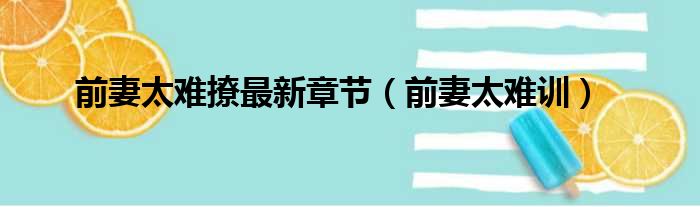 大家好,小东方来为大家解答以上的问题。前妻太难撩最新章节,前妻太难训这个很多人还不知道,现在让我们一起来看看吧!