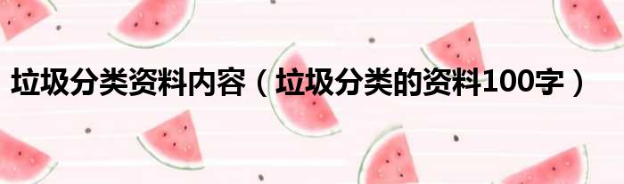 导读 大家好,小东方来为大家解答以上的问题。垃圾分类资料内容,垃圾分类的资料100字这个很多人还不知道,现在让我们一起来看看吧!1、可回收垃圾