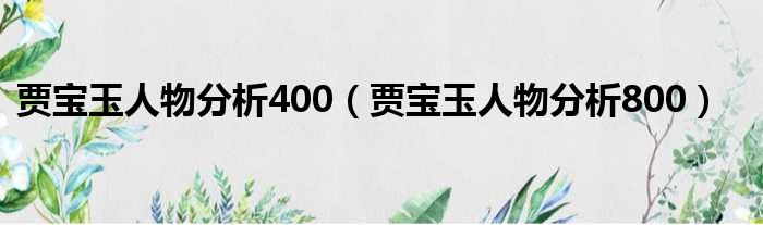贾宝玉人物分析400(贾宝玉人物分析800)