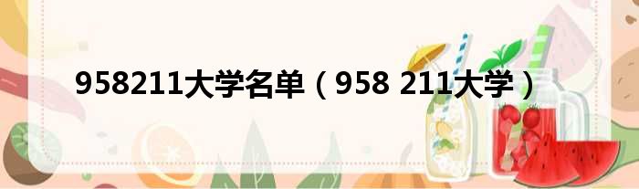 导读 大家好,小东方来为大家解答以上的问题。958211大学名单,958 211大学这个很多人还不知道,现在让我们一起来看看吧!1、211工程:就是面向21