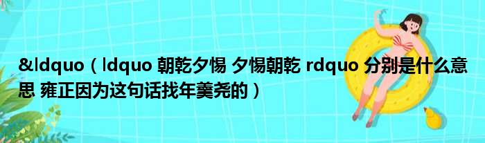 &ldquo(ldquo 朝乾夕惕 夕惕朝乾 rdquo 分别是什么意思 雍正因为这句话找年羹尧的)