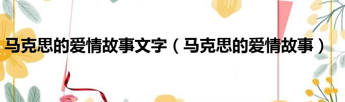 马克思的爱情故事文字(马克思的爱情故事)