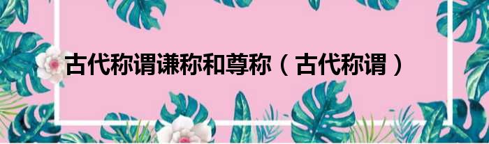 古代称谓谦称和尊称(古代称谓)