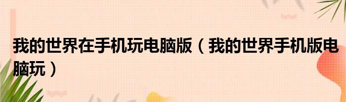 我的世界在手机玩电脑版(我的世界手机版电脑玩)