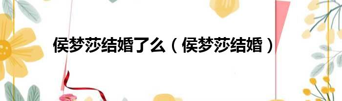 导读 大家好,小东方来为大家解答以上的问题。侯梦莎结婚了么,侯梦莎结婚这个很多人还不知道,现在让我们一起来看看吧!1、侯梦莎,1985年8月出生