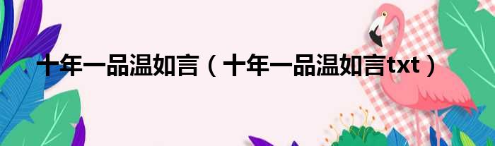 导读 大家好,小东方来为大家解答以上的问题。十年一品温如言,十年一品温如言txt这个很多人还不知道,现在让我们一起来看看吧!1、《十年一品温如