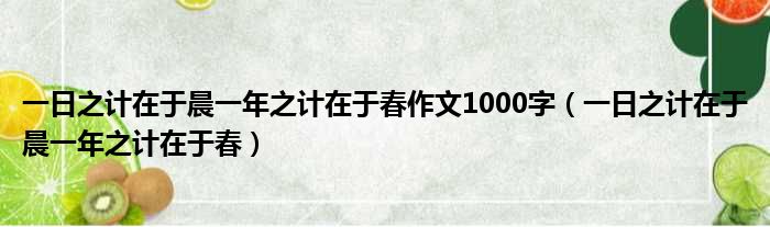 一日之计在于晨一年之计在于春作文1000字(一日之计在于晨一年之计在于春)