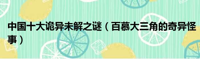 导读 大家好,小东方来为大家解答以上的问题。中国十大诡异未解之谜,百慕大三角的奇异怪事这个很多人还不知道,现在让我们一起来看看吧!1、百慕