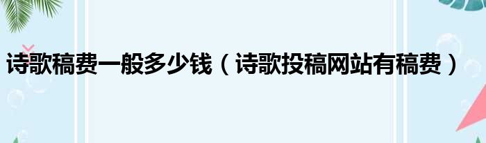 诗歌稿费一般多少钱(诗歌投稿网站有稿费)