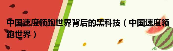 中国速度领跑世界背后的黑科技(中国速度领跑世界)